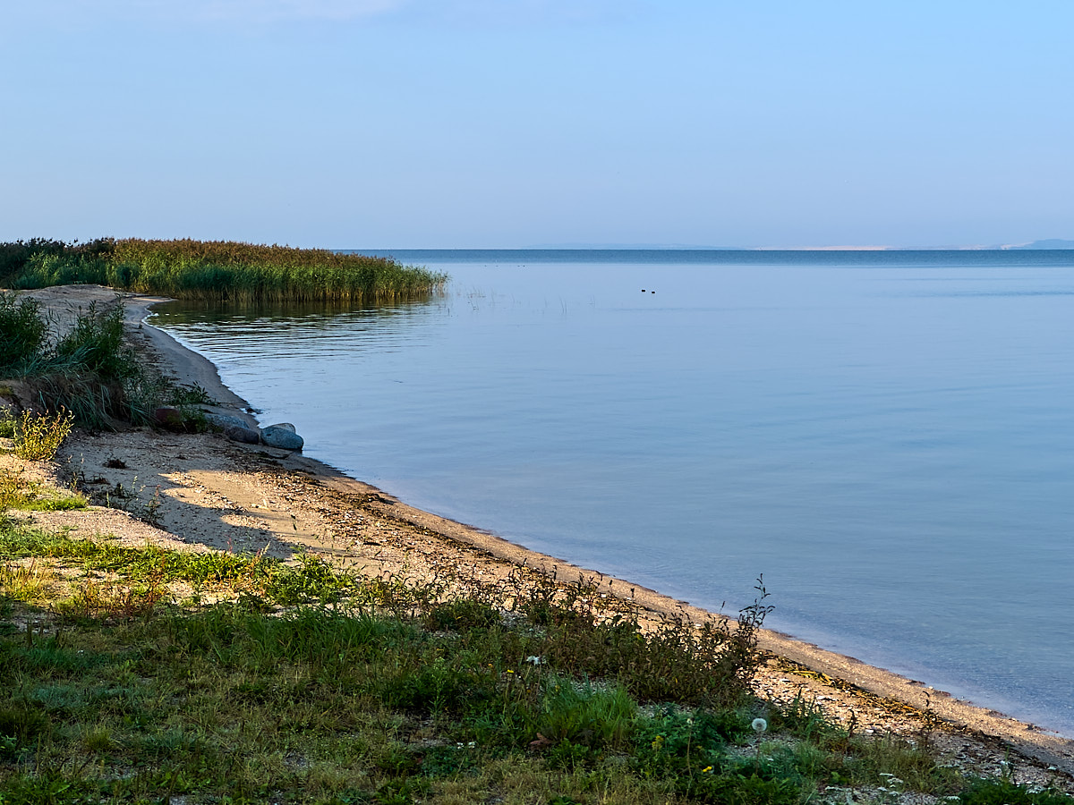 Mein heutiger Stellplatz Ventainė, hart nördlich des Kaps, ist ein stiller Ort. Er liegt unmittelbar am Wasser, mit freiem Blick über das Haff nach Westen. Dabei ergeben sich schöne Stimmungen abends im Sonnenuntergang und tagsüber, wenn die weißen Dünen von der Nehrung herüberleuchten.