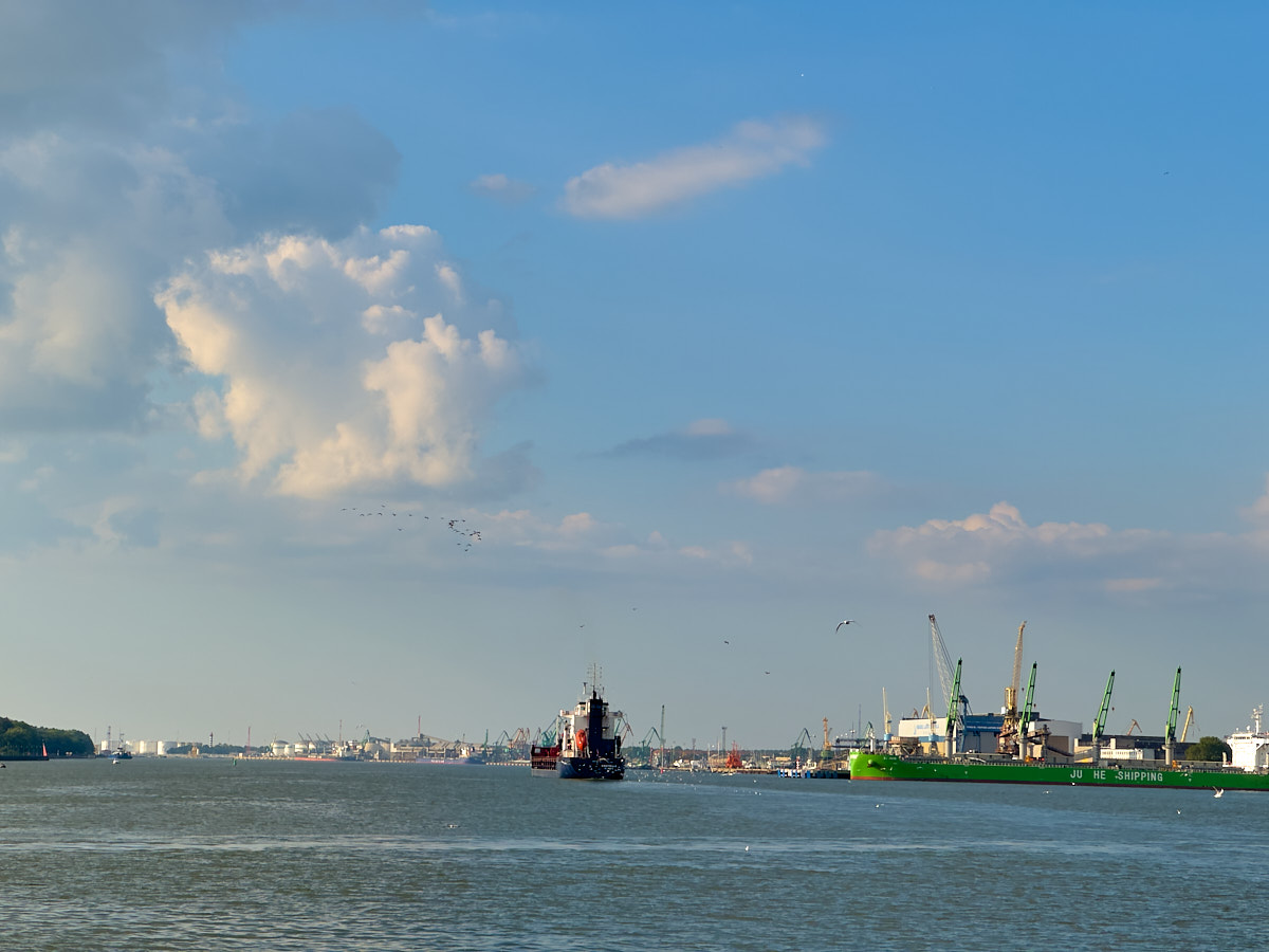 In Klaipéda (Memel) muss man eine Fähre nehmen, um den Nemunas (Memel) zu überqueren, der hier in die Ostsee mündet.