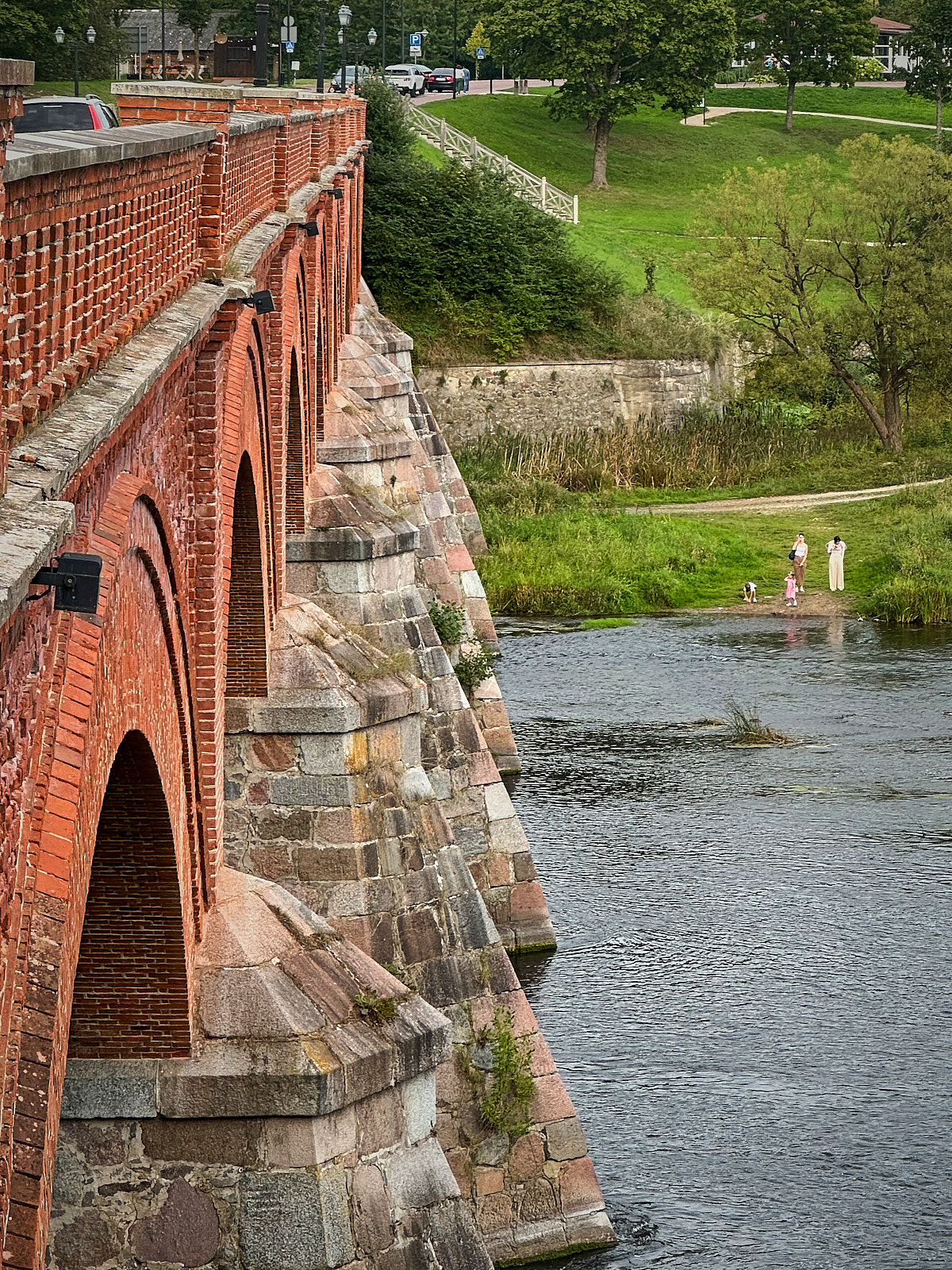 Sie wurde 1874 erbaut und ist mit einer Länge von 164 m die längste Autobrücke dieser Art in Europa. Mit sieben Bögen auf Feldsteinpfeilern war sie nicht nur die größte und prachtvollste Brücke in Lettland, sondern eine der modernsten in Europa. Von den Leistungen im Brückenbau zeugte damals die Brückenbreite, die die Fahrt zweier entgegenkommender Kutschen ermöglichte.