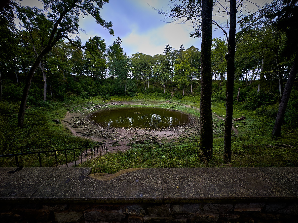 Vor ungefähr viertausend Jahren ist bei Kaali ein ca. 80 t schwerer Meteorit eingeschlagen. Vor dem Einschlag haben sich Teile vom Meteorit gelöst, sodass um den Hauptkrater herum acht weitere Einschläge bekannt sind. Man schätzt, dass die Wucht des Einschlags mit der Energie der Hiroshima-Bombe vergleichbar war. Um den Krater mit Tümpel liegt ein hoher Erdwall. Auf Bildern sieht das weniger spektakulär aus, als vor Ort. Entgegen meiner Erwartung war ich ziemlich beeindruckt.