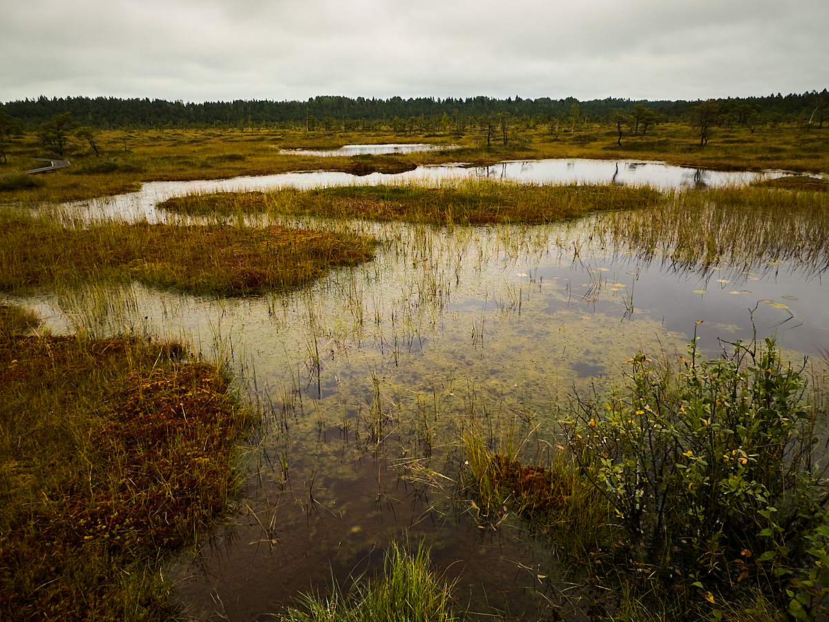 Im September, als ich dort war, herrschte eine andere Stimmung. Die Moore lagen ruhig da, das Wasser hatte sich längst zurückgezogen, und die Wege durch die Feuchtgebiete waren begehbar. Ich bin den Biberpfad und den Riisa-Pfad gelaufen – beide führen auf Holzstegen durch die Moorlandschaft. Es hatte geregnet und trotz der grauen Wolken haben die herbstlichen Farben geleuchtet.