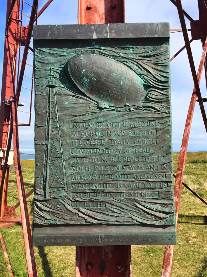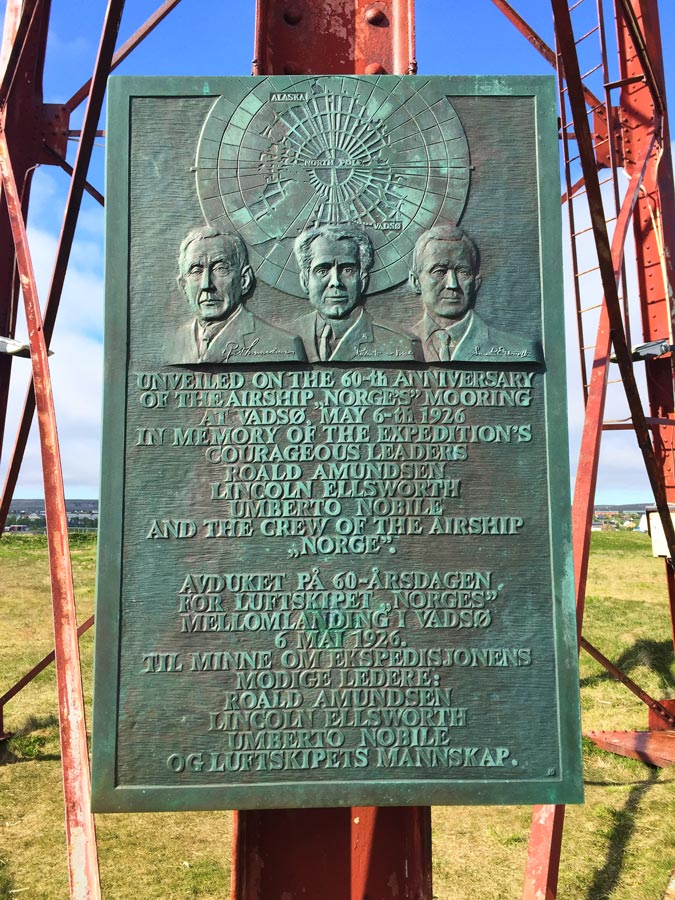 Roald Amundsen hatte schon reichlich Geschichte geschrieben, als er mit dem Luftschiff „Norge“ in Vadsø am 06. Mai 1926 an einem Gittermast festmachte. Zusammen mit seinen Begleitern Umberto Nobile und Lincoln Ellsworth und der Mannschaft der „Norge“ überflog er von hier aus, nach Zwischenlandungen, am 12. Mai den Nordpol, vermutlich als erster. Gebaut war das Luftschiff übrigens von dem Italienischen Luftfahrtpionier Nobile.